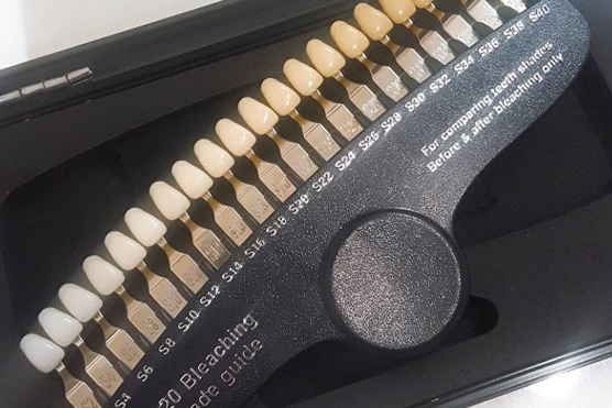 施術後に、どれだけ歯が白くなったかをダミーの歯を用いて測定し、終了となります