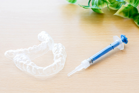 完成したマウスピースと専用ジェルをお渡し、自宅でのホワイトニング方法を説明します。