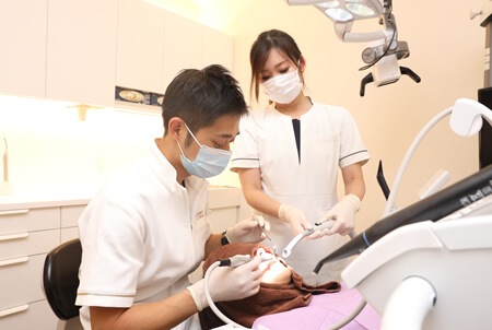 手術の前に、検査で発見された、歯周病、歯槽膿漏、虫歯治療など、残存歯の治療を行います。